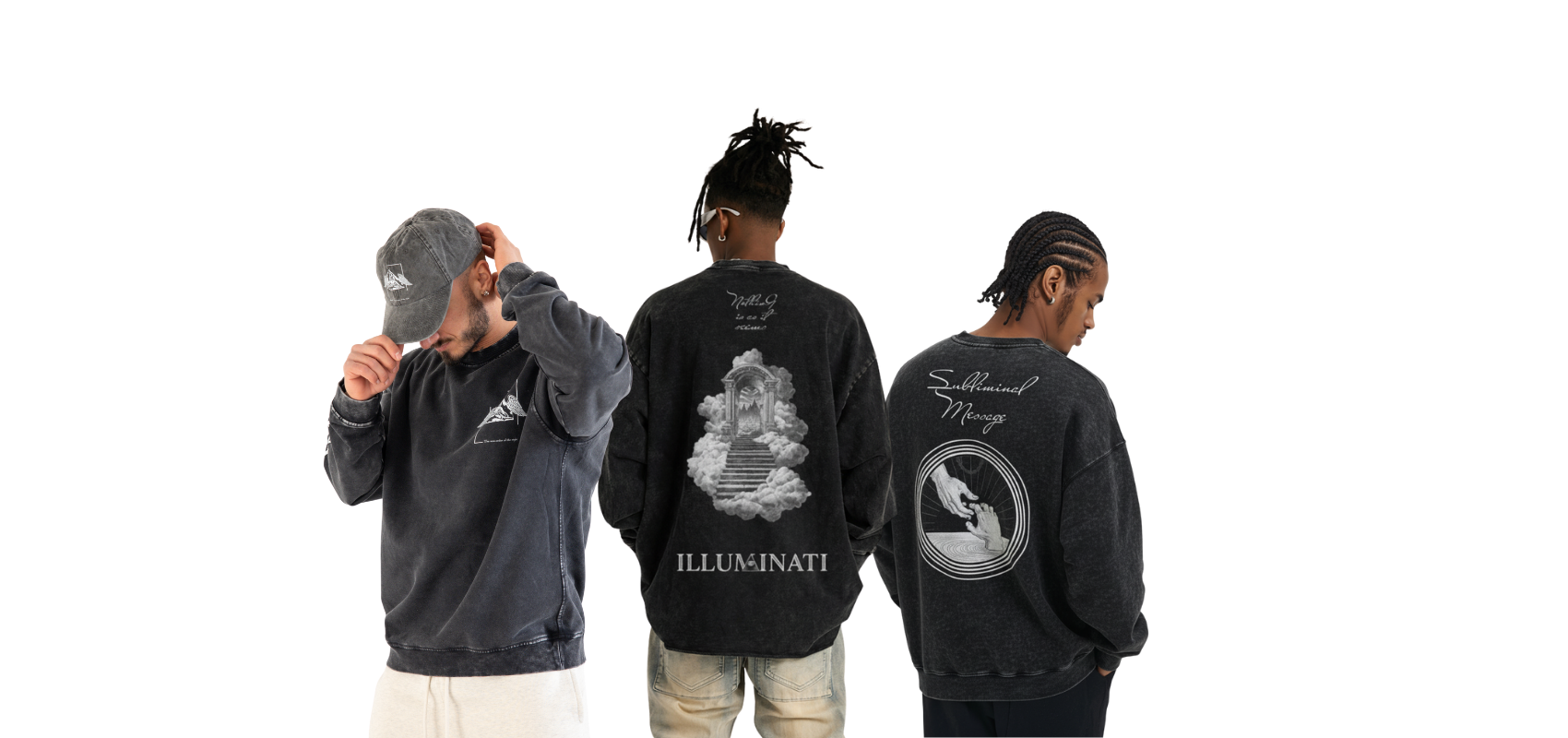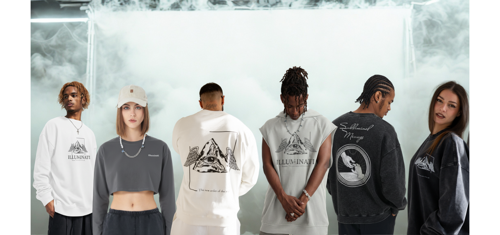 Our brand combines mystery and style, drawing inspiration from the Illuminati symbol to create a unique and original aesthetic, completely detached from the beliefs surrounding them. The distinctive design, revisited with wings, hands, and unique details, represents freedom , belonging , and originality. A new order of elite streetwear fashion. We offer oversized, comfortable, and trendy pieces, with an ever-evolving assortment.